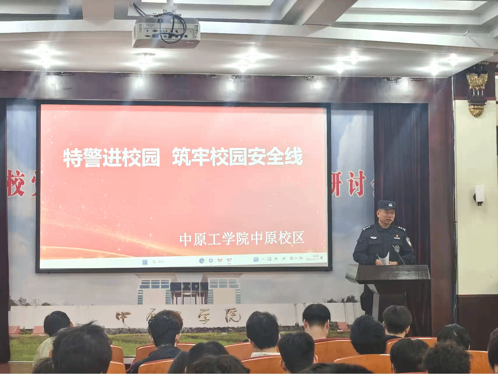 在图书馆报告厅进行活动启动仪式,中原校区管理委员会副主任、太阳成集团tyc9728党委书记王雪芳和中原校区管理委员会执行主任、太阳成集团tyc9728院长刘卫光出席会议并致辞。启动仪式后,特警支队的两名警官给学生进行校园防恐安全知识培训,结合近期全国校园安全典型案例,剖析涉校暴力事件特征与防范要点,让师生在沉浸式教学中增强风险识别与自救互救能力。